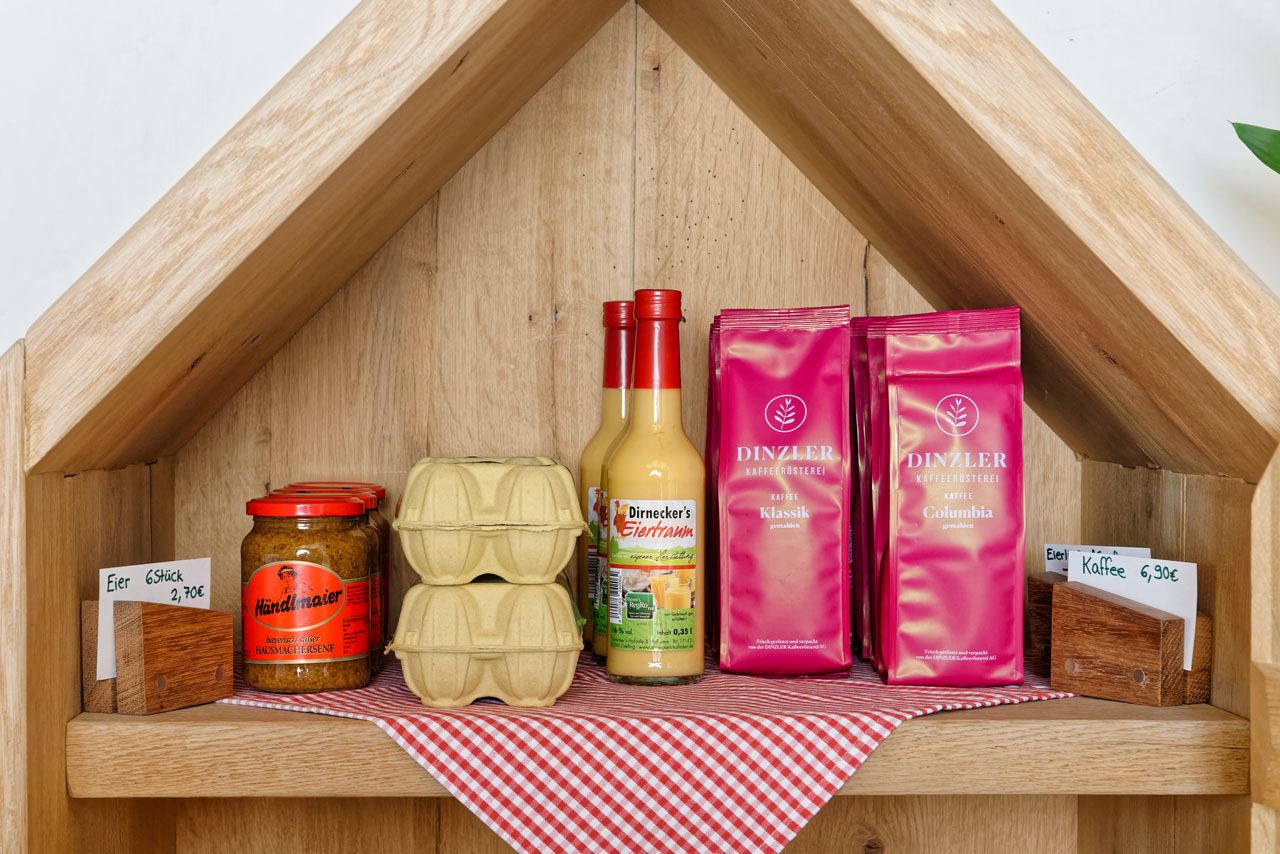 Am Hagerhof finden Sie auch einen Selbstbedienungsladen, der eine breite Auswahl an frischen Produkten bietet.
