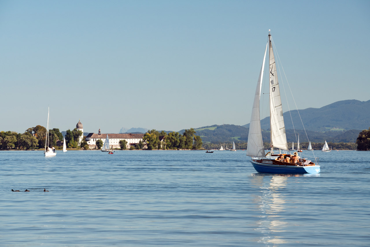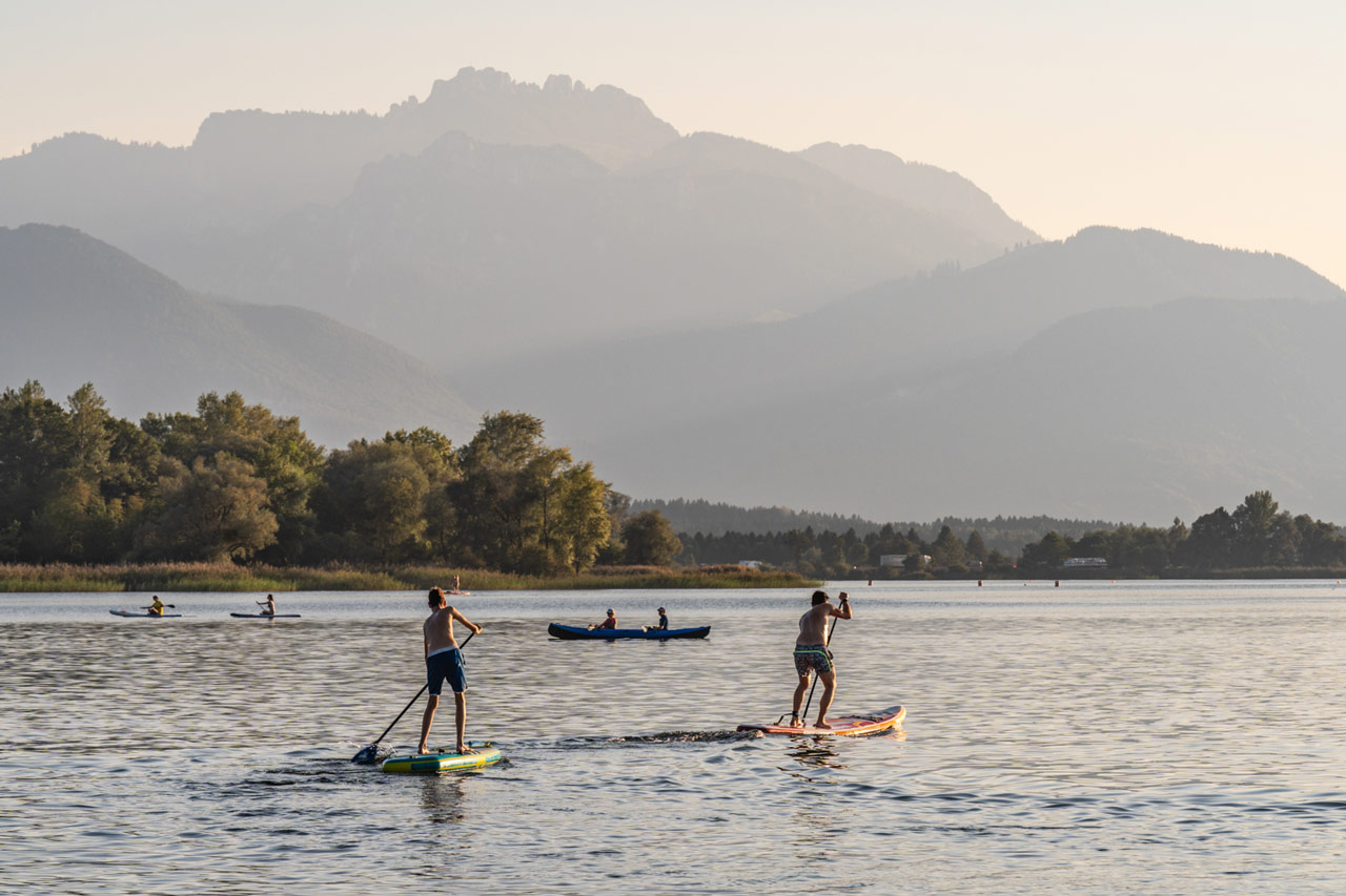 In deren Nähe finden Sie häufig einen Verleihservice für Surfbretter, Tret- und Ruder- oder Elektroboote. Informationen zu Schifffahrtskursen und Bootsverleih finden Sie hier. In aller Regel kann im Chiemsee von Anfang Mai bis Mitte September gebadet werden.