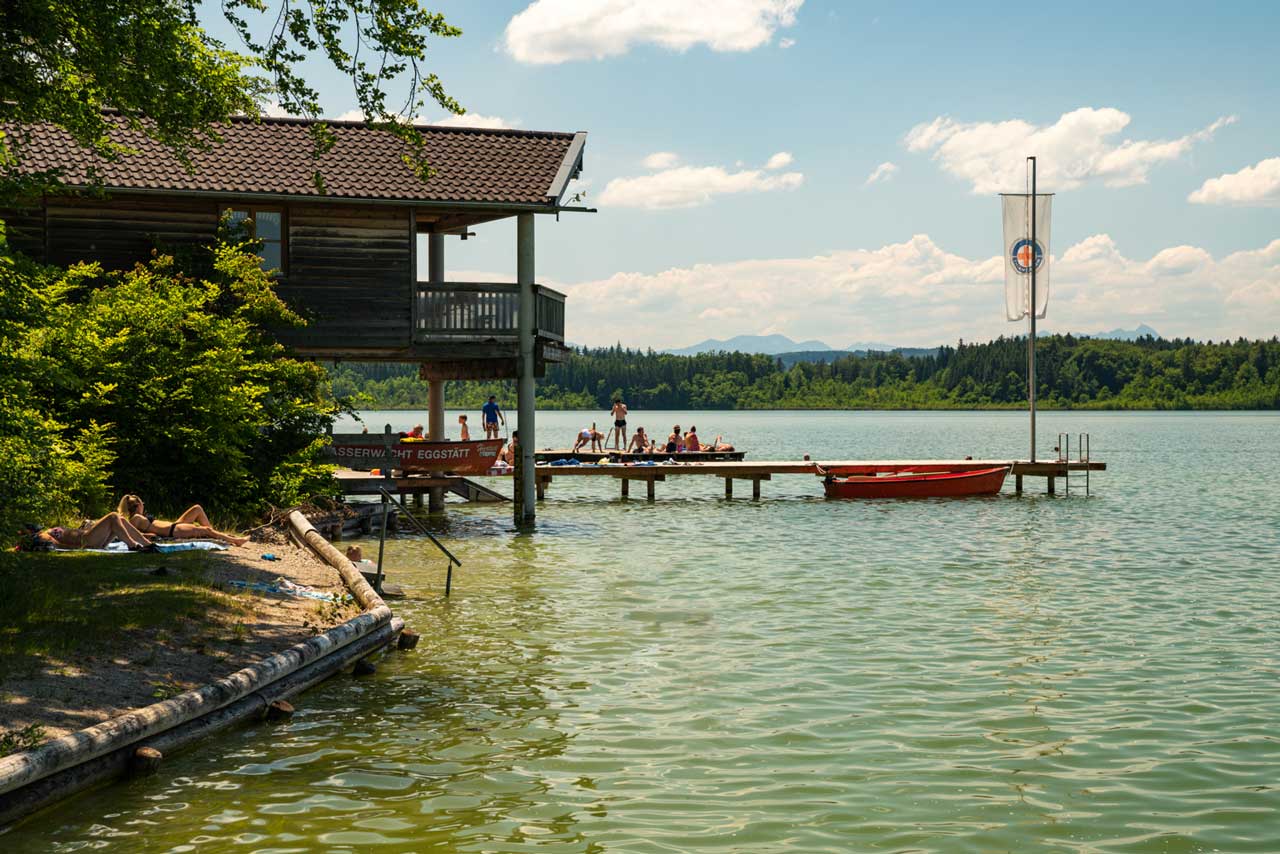 Der Langbürgner See ist der größte der 17 Seen der Eggstätt-Hemhofer Seenplatte. Er gehört zu Bad Endorf und liegt nur 4 km vom Hagerhof entfernt. Die schönste Badestelle ist bei Westerhausen - Stock, vom Kreisel in Natzing Richtung Rimsting fahren, beim Schild Firma Fritz rechts abbiegen, nach ein paar 100 m auf der linken Seite ist die Badestelle.