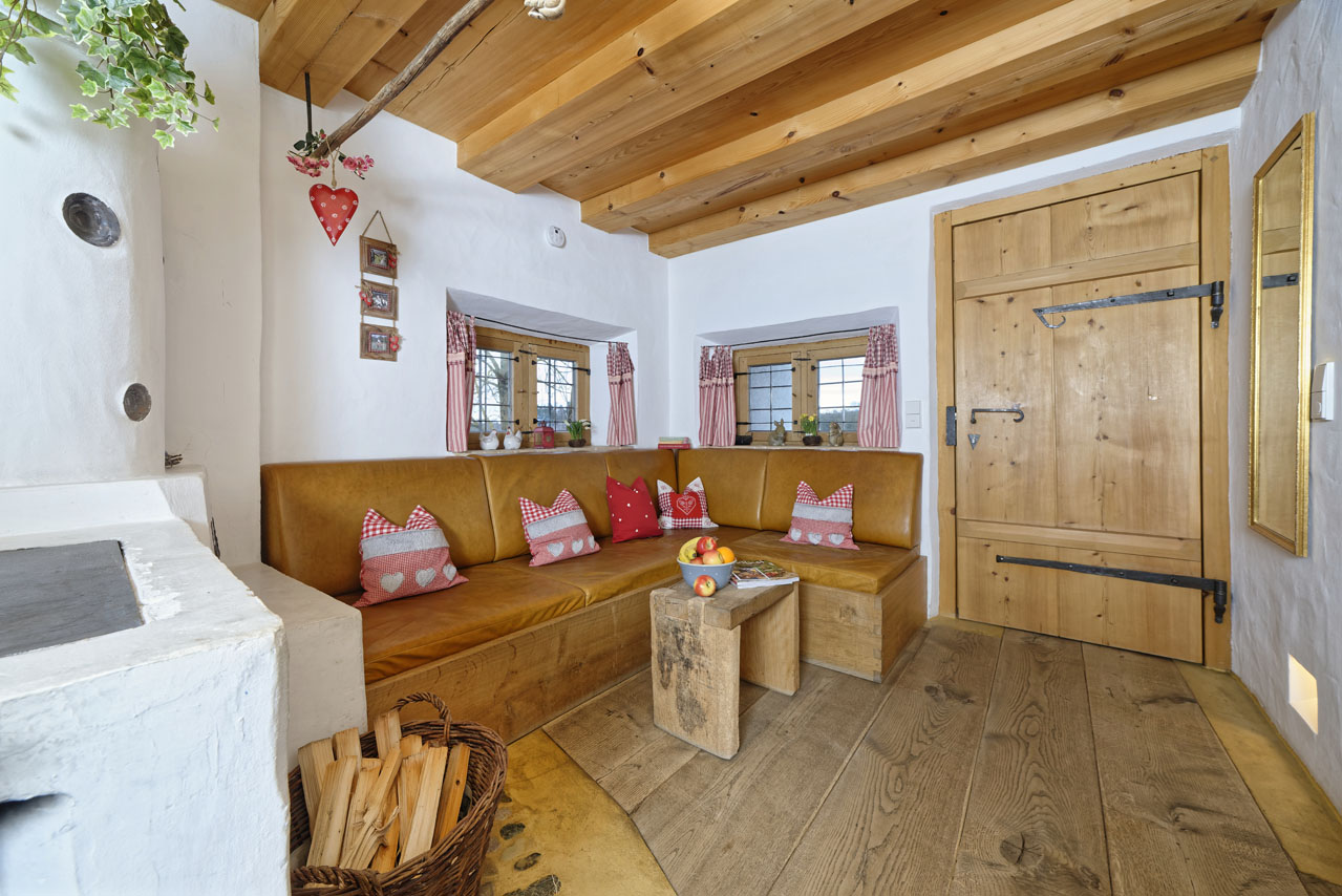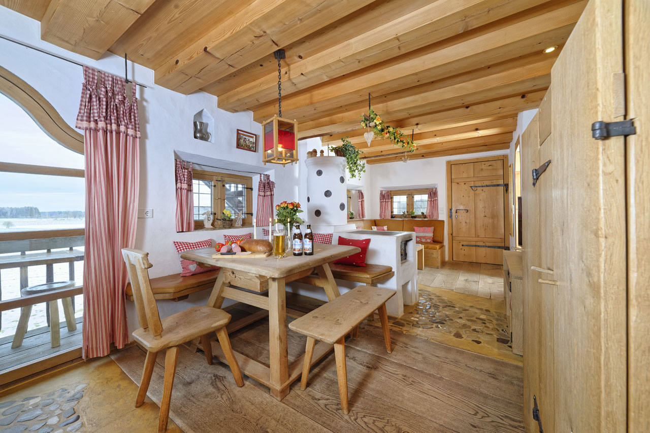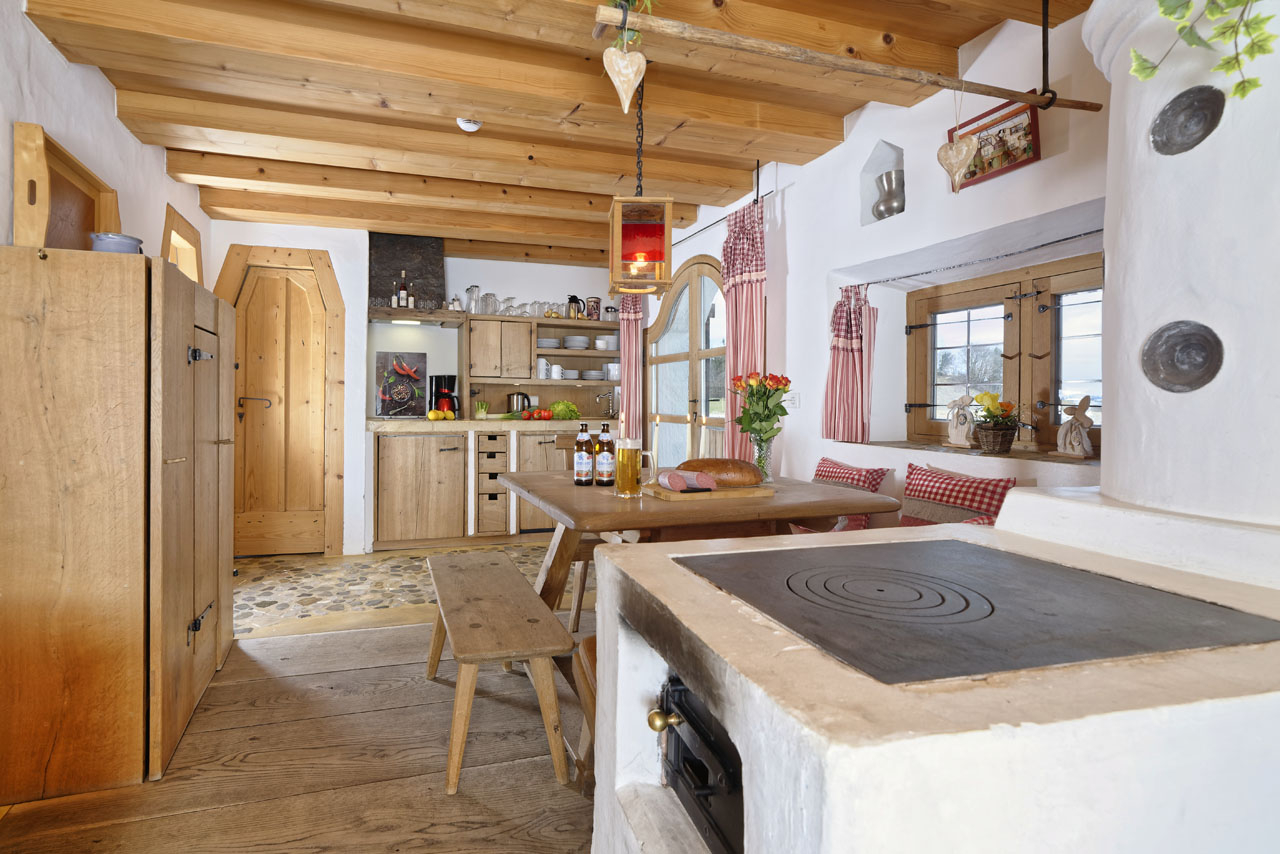 • Wohnzimmer, Esszimmer und Küche als original Chiemgauer Baustil lieblicher Kachelofen