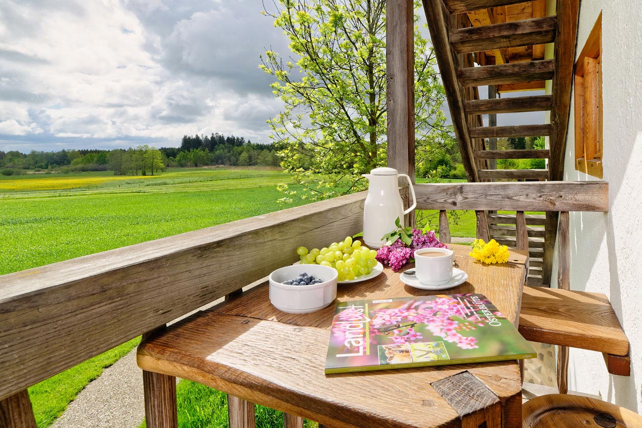 5 Sterne Ferienwohnung im original Chiemgauer Baustil inklusive Kachelofen, zwei Schlafzimmern, Balkon und Terrasse mit herrlichem Panoramablick. Kuschelig und komfortabel ...