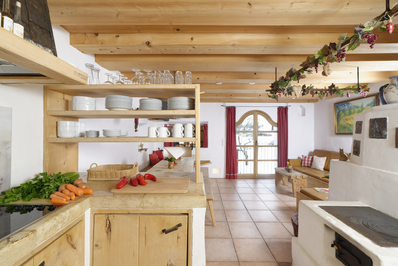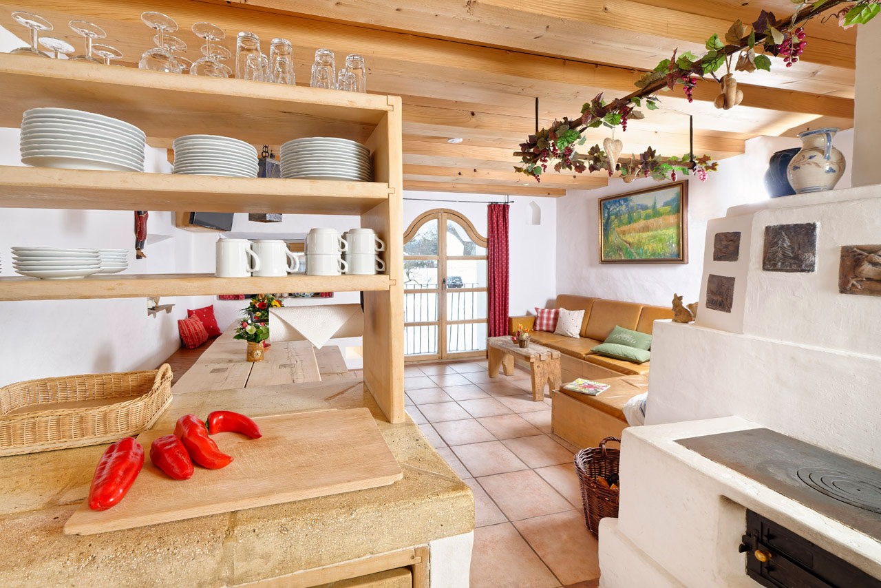 Großzügige Luxus Maisonette-Wohnung mit drei Schlafzimmern, mediterraner Südbalkon, großer Esstisch, Kinderhöhle hinterm Kachelofen, große Erlebnisbetten ...