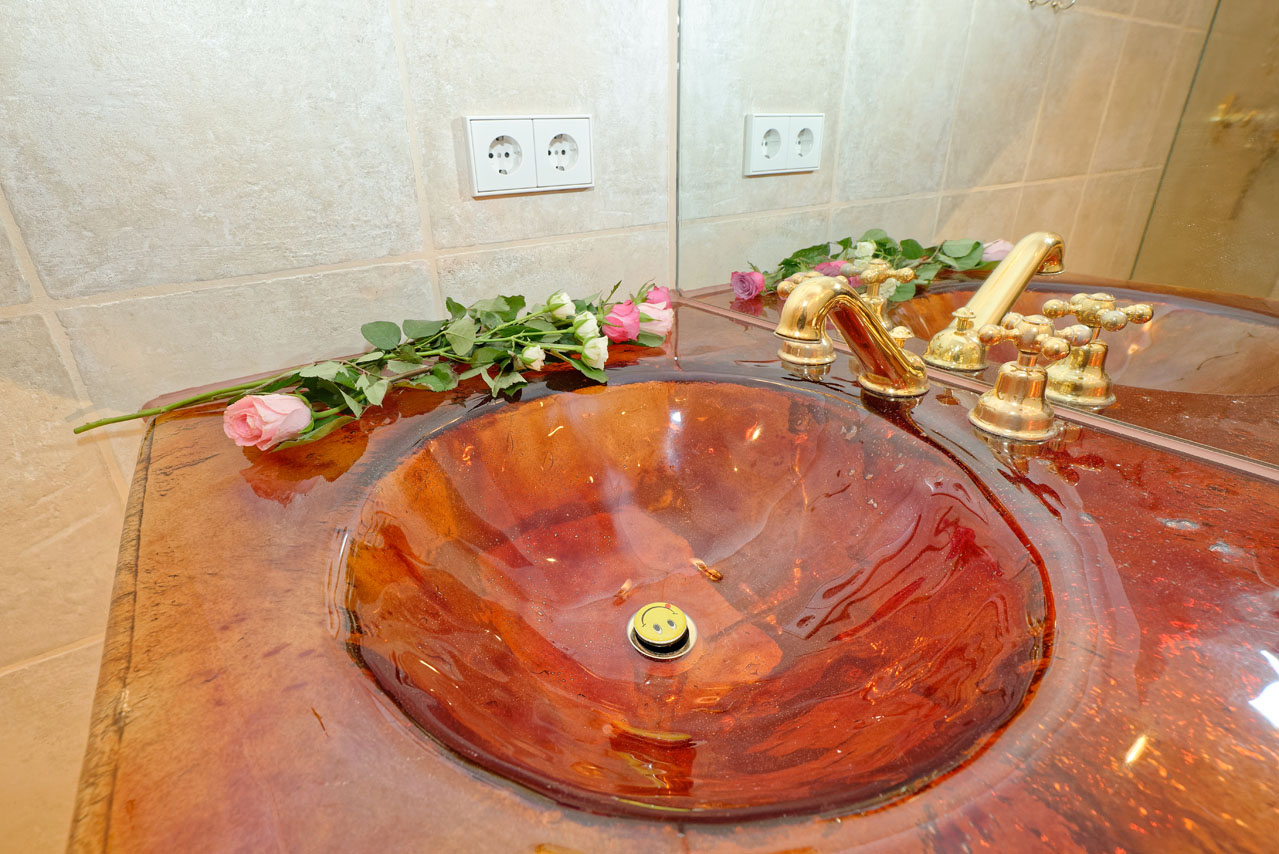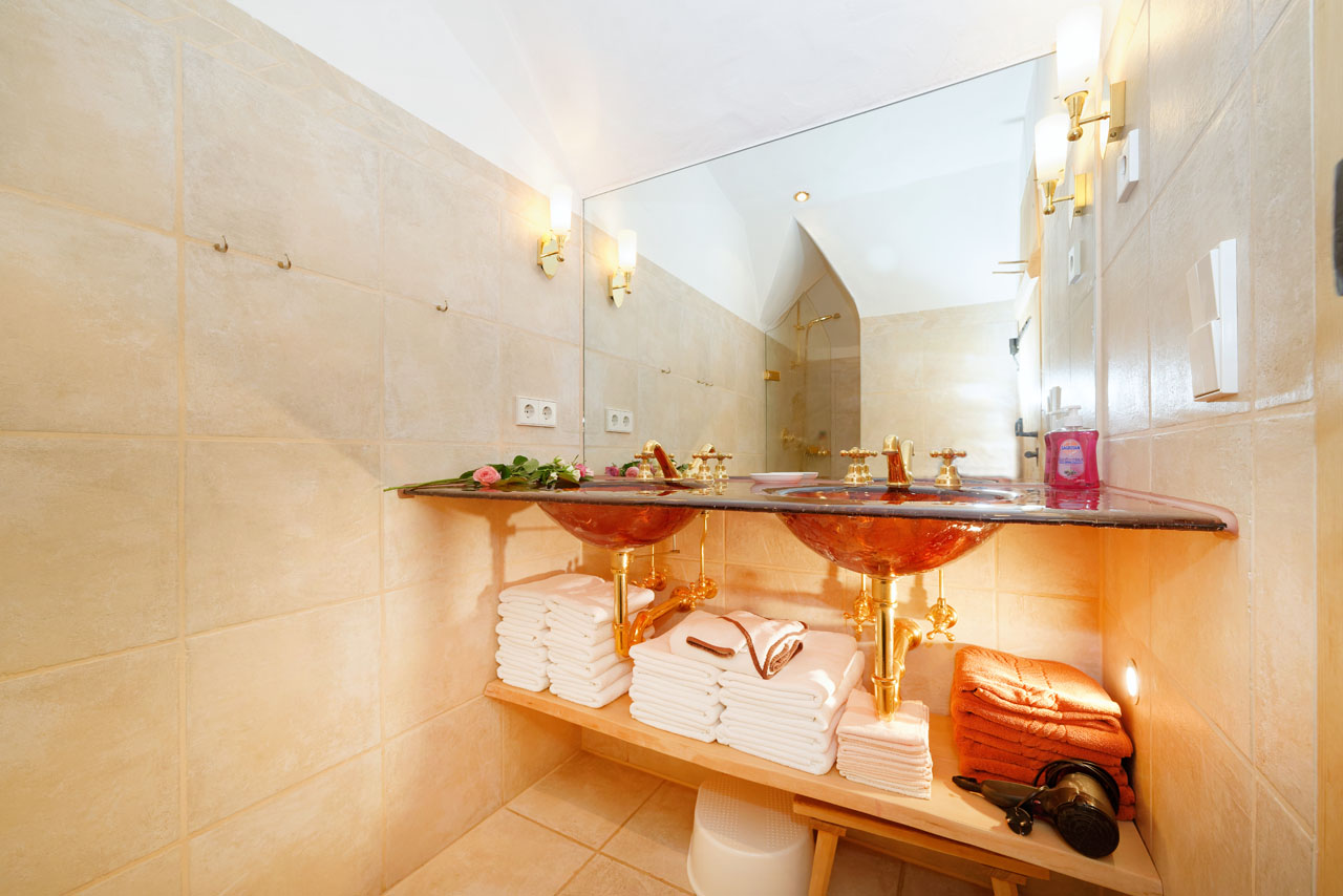 • exklusive Dusche mit Doppelglaswaschbecken, separates WC