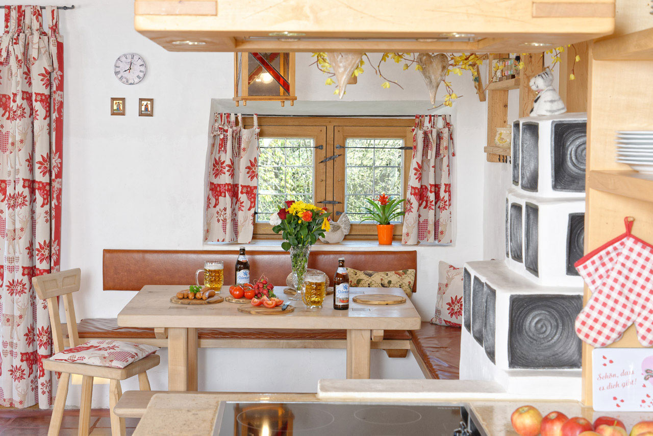 Küche, Esszimmer und Wohnzimmer als original Chiemgauer Bauernstube