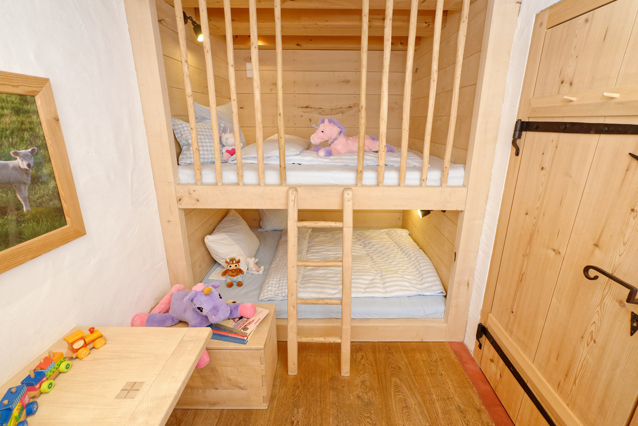 - Kinderzimmer mit Erlebnisbetten (zweimal 1,60 m x 2 m)